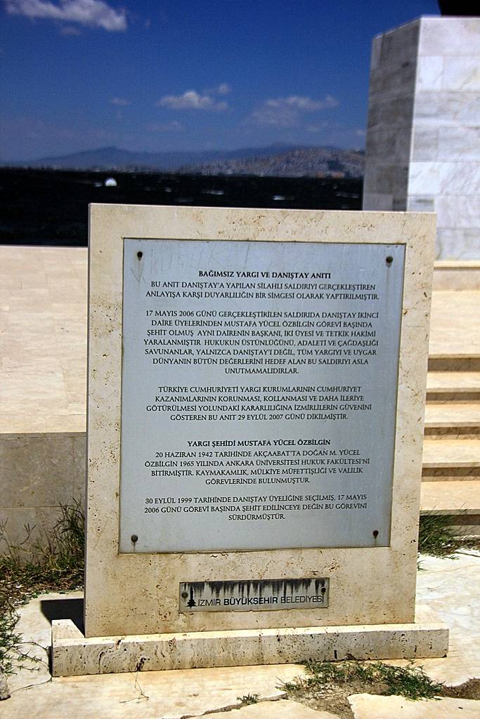 İzmir Büyükşehir Belediyesi’nin, 17 Mayıs 2006 tarihinde Danıştay’a düzenlenen saldırı anısına yaptırarak İnciraltı’na diktiği “Bağımsız Yargı ve Danıştay Anıtı” törenle açıldı. Kaidesi ile birlikte 5 metre uzunluğunda, yaklaşık 1.3 ton ağırlığındaki bronz anıtın Danıştaya yapılan silahlı saldırıyı gerçekleştiren anlayışa karşı duyarlılığın bir simgesi olarak İzmir Büyükşehir Belediyesi tarafından 29 Eylül 2007 Tarihinde dikilmiştir.