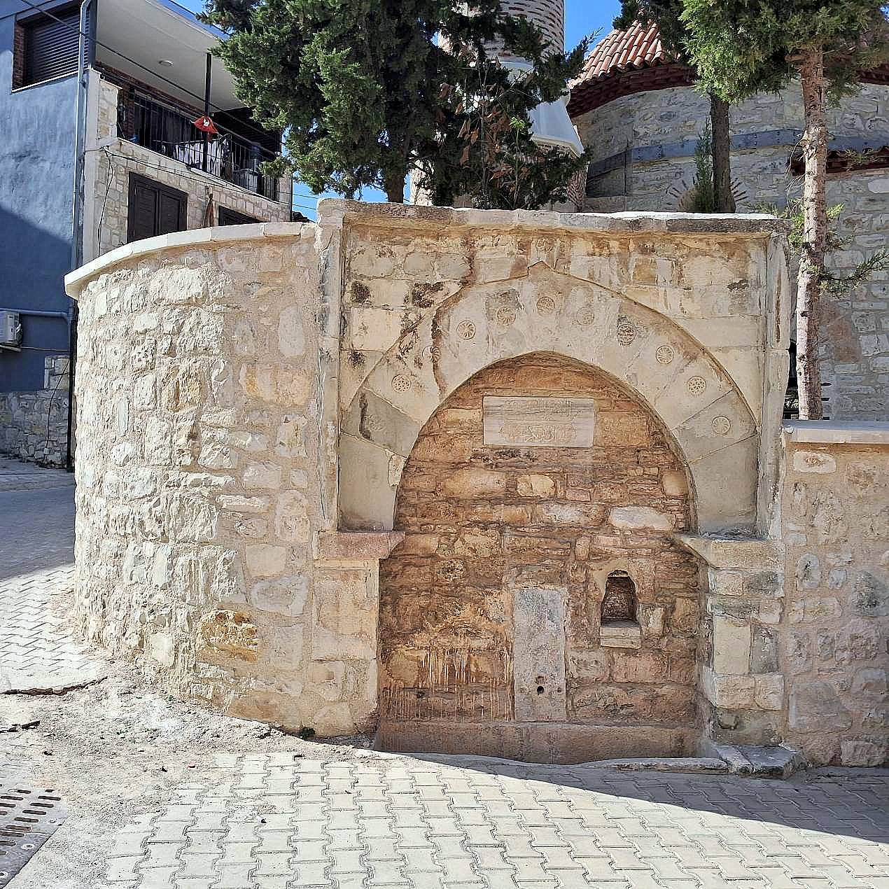 Caminin köşesinde yine cami ile yaşıt yeni restore edilmiş, oldukça güzel bir çeşme yer almaktadır. Harim duvarları kesme taştan yapılmış olup, çatı kiremitle kaplı kirpi saçak denilen tiptedir.