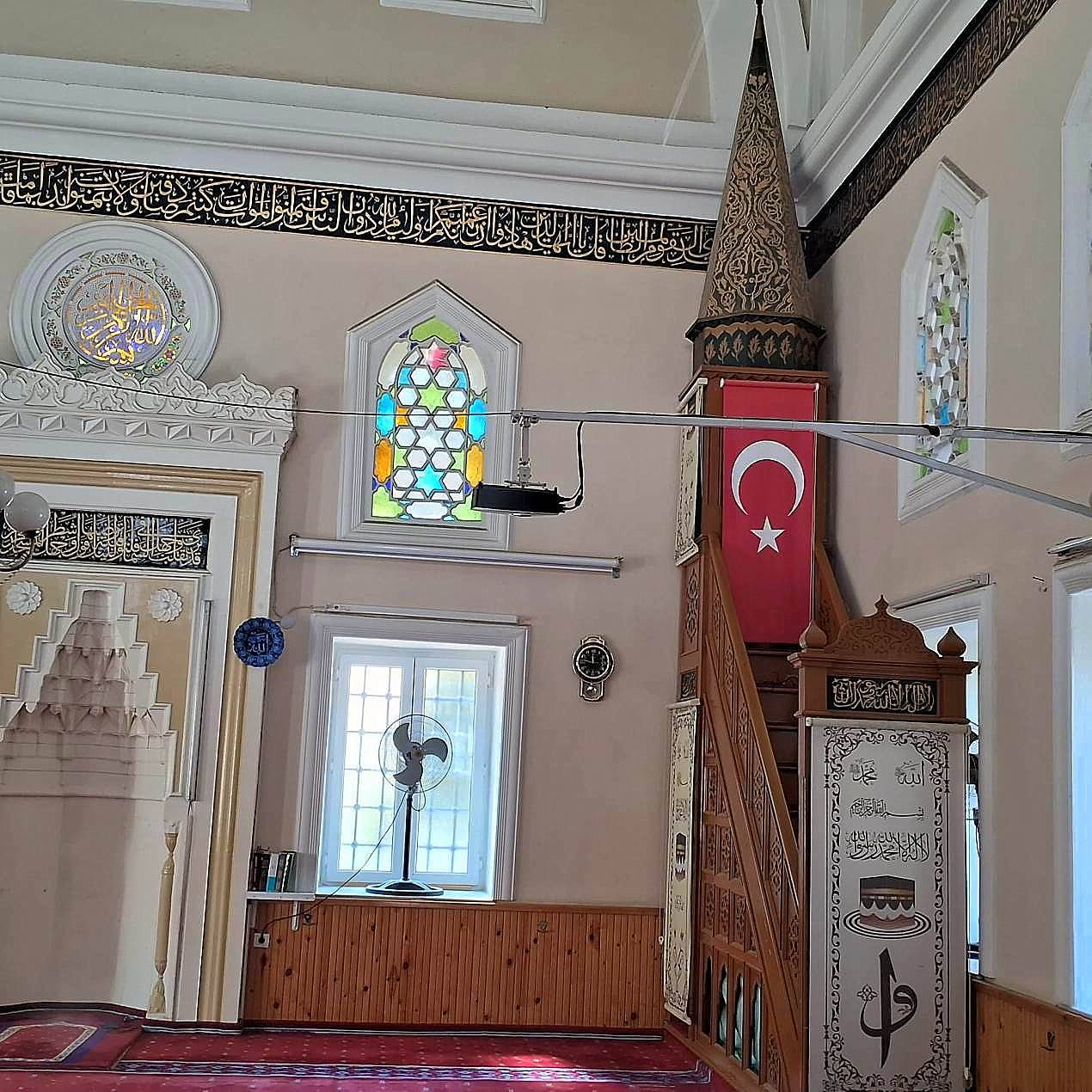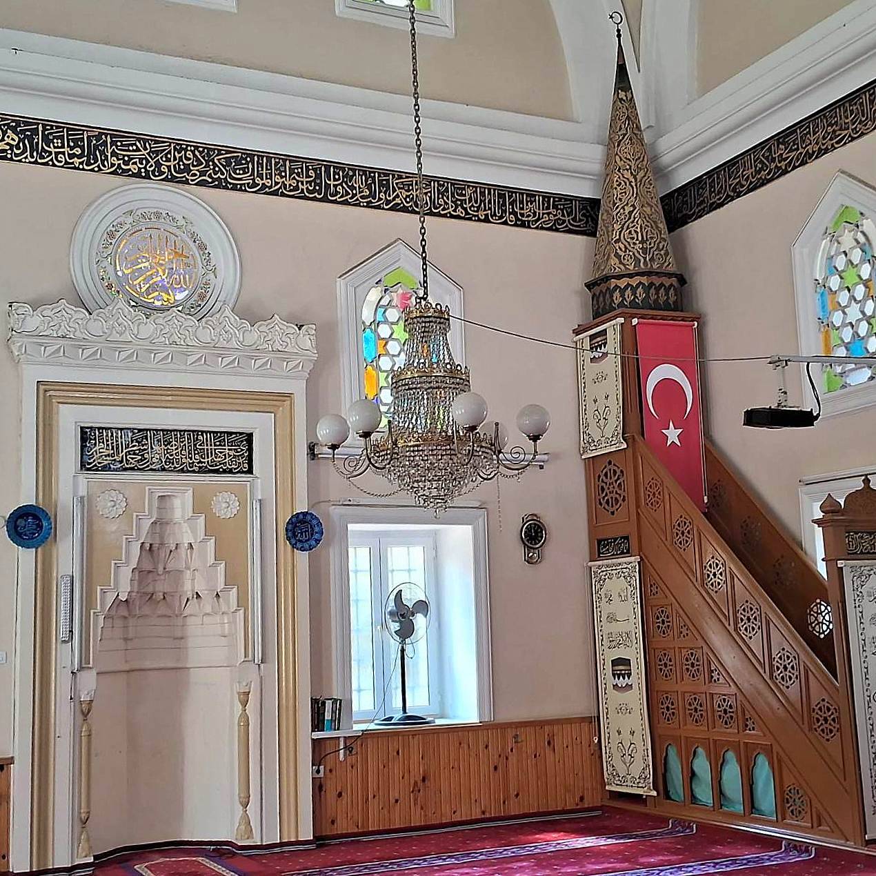 Mihrap nişi içinde mukarnas işlemeli, mihrap üstü alçı süslemeli düz bir kemer ve kemerin üzerinde ayet işlenmiş madalyon ile gösterişlidir. Cami harim içi boydan boya kalem işi ayet ile çevrelenmiştir. Vaiz kürsüsü ahşap ve işlemelidir.