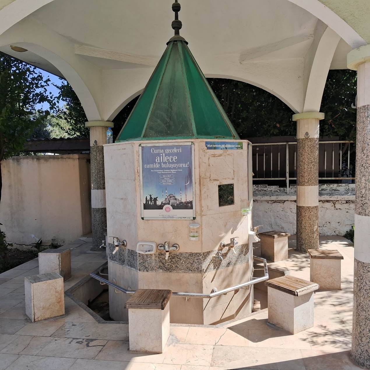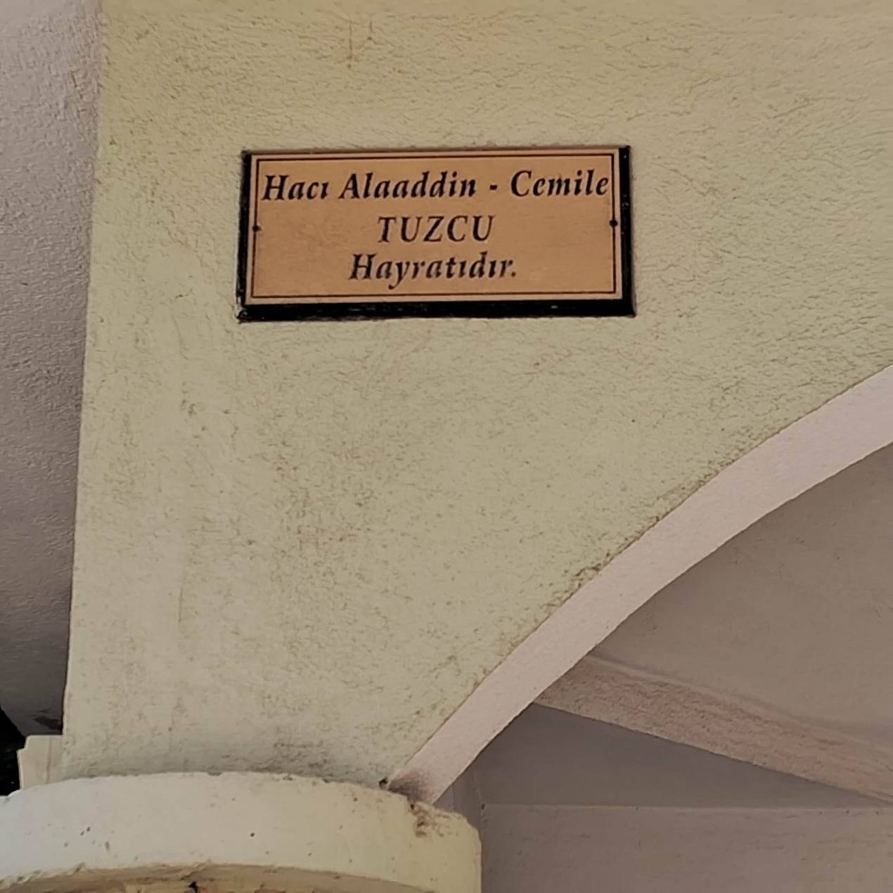 Büyük ve gayet temiz ve düzenli avlusunda Hacı Alaaddin ve eşi Cemile Tuzcu tarafından yaptırılmış şadırvan vardır.
