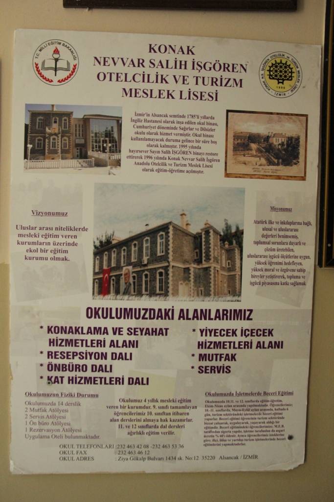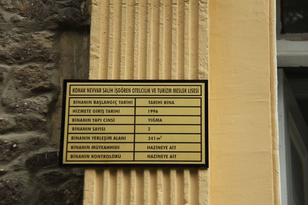 1995 yılında hayırsever Sayın Salih İŞGÖREN binayı restore ettirerek 1996 yılında Konak Nevvar Salih İşgören Anadolu Otelcilik ve Turizm Meslek Lisesi olarak eğitim-öğretime açılmıştır. Okulun A-B-D blokları tarihi eser kapsamında kabul edildiği için hiçbir değişiklik yapılamamaktadır. Bu sebeple okul binaları eğitim öğretim için zamanla yetersiz kalmıştır. Binaların kullanımında yaşanan bu yetersizlik nedeni ile C blokta 2001 yılında ek derslikler yapılmıştır.
