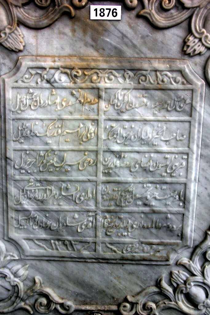 Efendi gayet güzel hatla nakşetmiştir...” şeklinde bilgi verilmektedir. Mustafa Üzel’in açıklaması da göstermektedir ki bu kitabe, İzmir Mevlevihanesi Şeyhi Nureddin Dede Efendi tarafından yazılmıştır.