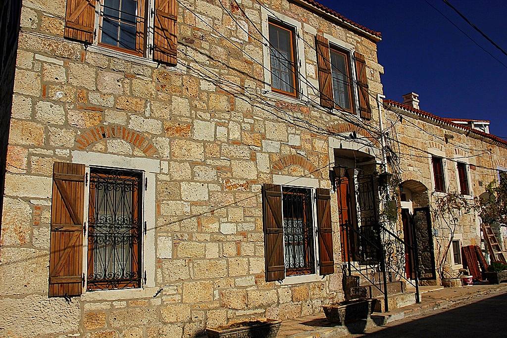 Tek ev tipleri, ayrı nizam, sıvasızyığma taş yapılardır. Genelde 2 tam katlı olurlar. Bahçeleri arkada veya yanda olabilir. Çoğunluğu 19. Yüzyıl ve 20. Yüzyıl başlarında yapılmıştır. Levantenlerin İzmir ve civarında oluşturdukları yapı stili etkisi altında kalanları, kemerli ve girintili , 5 metre gibi yüksekliklere varan girişlere sahiptir.