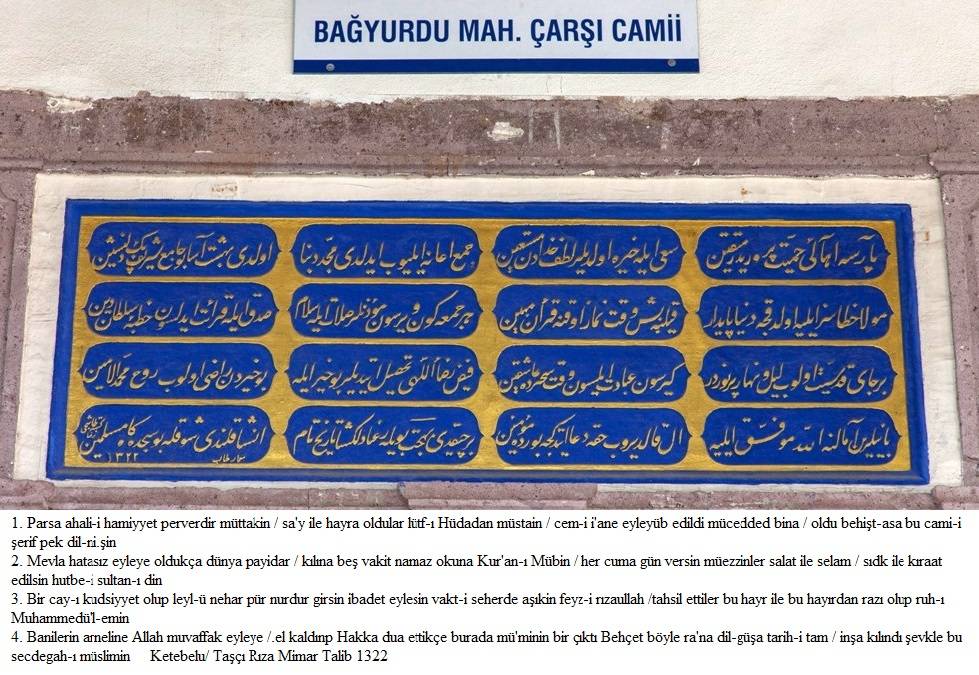 ÇARŞI CAMİİ - BAĞYURDU, İNŞA KİTABESİ