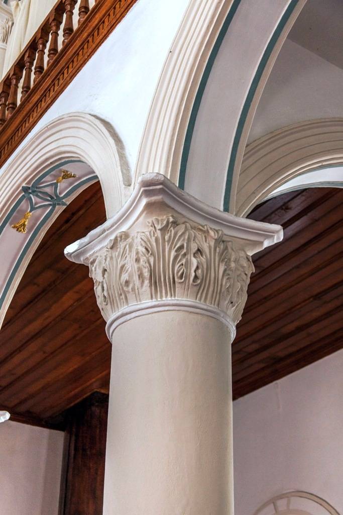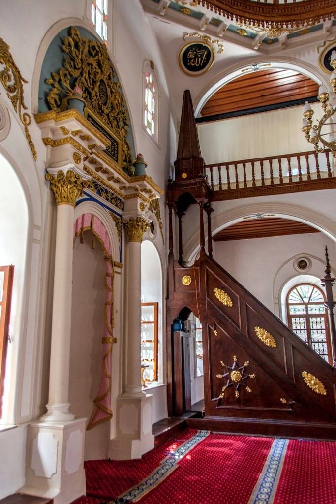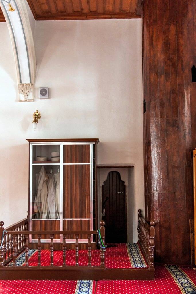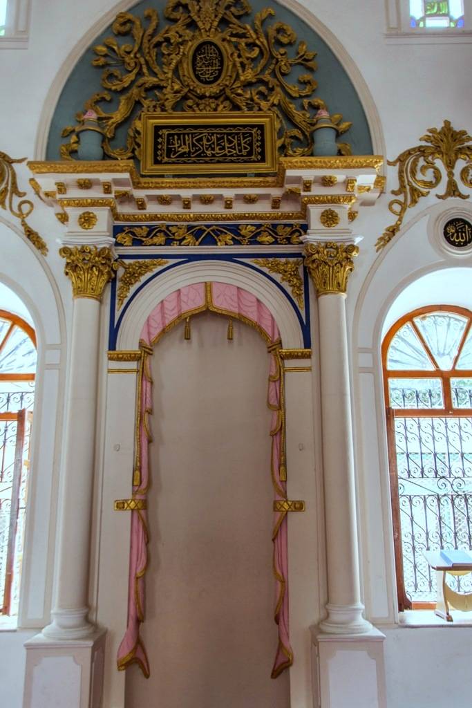 Yarım daire kesitli bir niş eklindeki mihrap yuvarlak kemerli bir kavsaraya sahiptir. İki yanda birer sütunçe bulunmaktadır. Mihrap kavsarası sütuncelerin başlıkları ve tepelik zengin alçı süslemelere sahiptir.