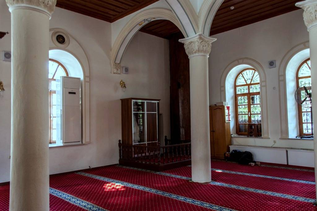 Kuzey cephenin ortasında yer alan giriş aralığından yapının harirmine ulaşılmaktadır. Doğu batı yönlü dikdörtgen bir plan şemasına sahip harimde galeri şeklinde doğu batı ve kuzey duvarlar boyunca uzanan üç yönlü U şeklinde bir mahfil katı bulunmaktadır. Mahfil altı bağımsız, ikisi kıble duvarına bitişik toplam sekiz adet ahşap sütun üzerine oturmaktadır. Sütunlar birbirine yuvarlak kemerlerle bağlanmıştır. Harimin kuzey-doğu ve kuzey-batı köşelerinde yer alan döner merdivenler vasıtasıyla mahfile ulaşılmaktadır.