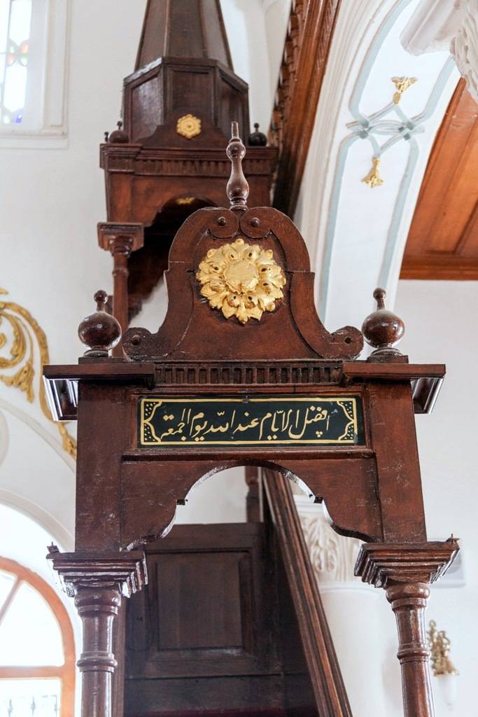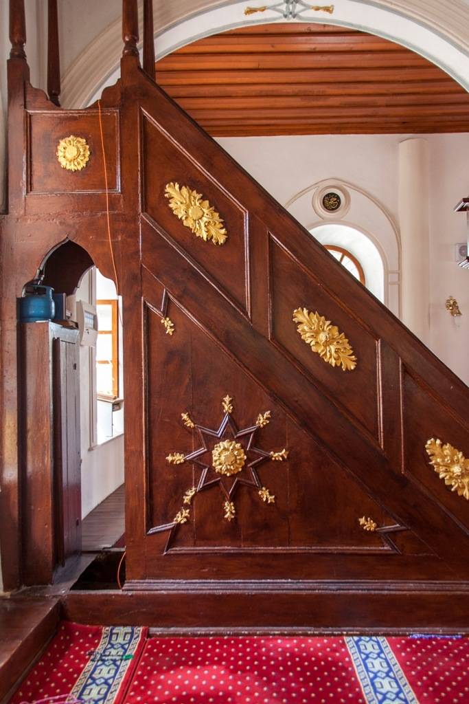 Minber ahşap malzemelidir. Minberin aynalıklarında kenger yapraklan ve yıldızlardan meydana gelen süslemeler bulunmaktadır. Yapının süslemeleri harim mekânında toplanmıştır. Mihrap önü kubbesinin sekizgen kasnağı yapıya dışardan bir hareketlilik kazandırmaktadır.