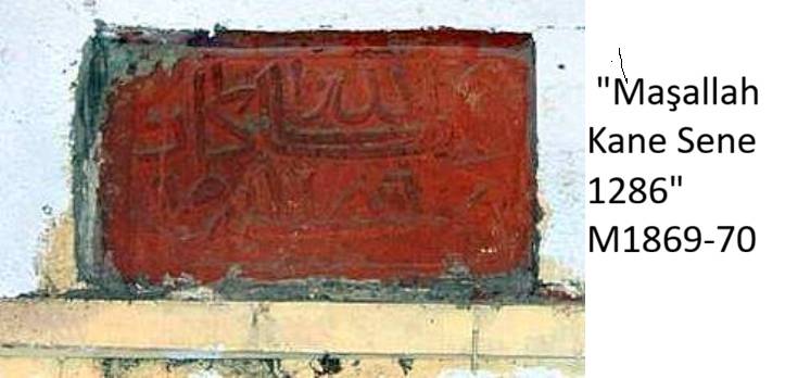 Giriş kapı alınlığındaki tamir kitabede "Maşallah Kane Sene 1286" Miladi 1869-70 yazıyor