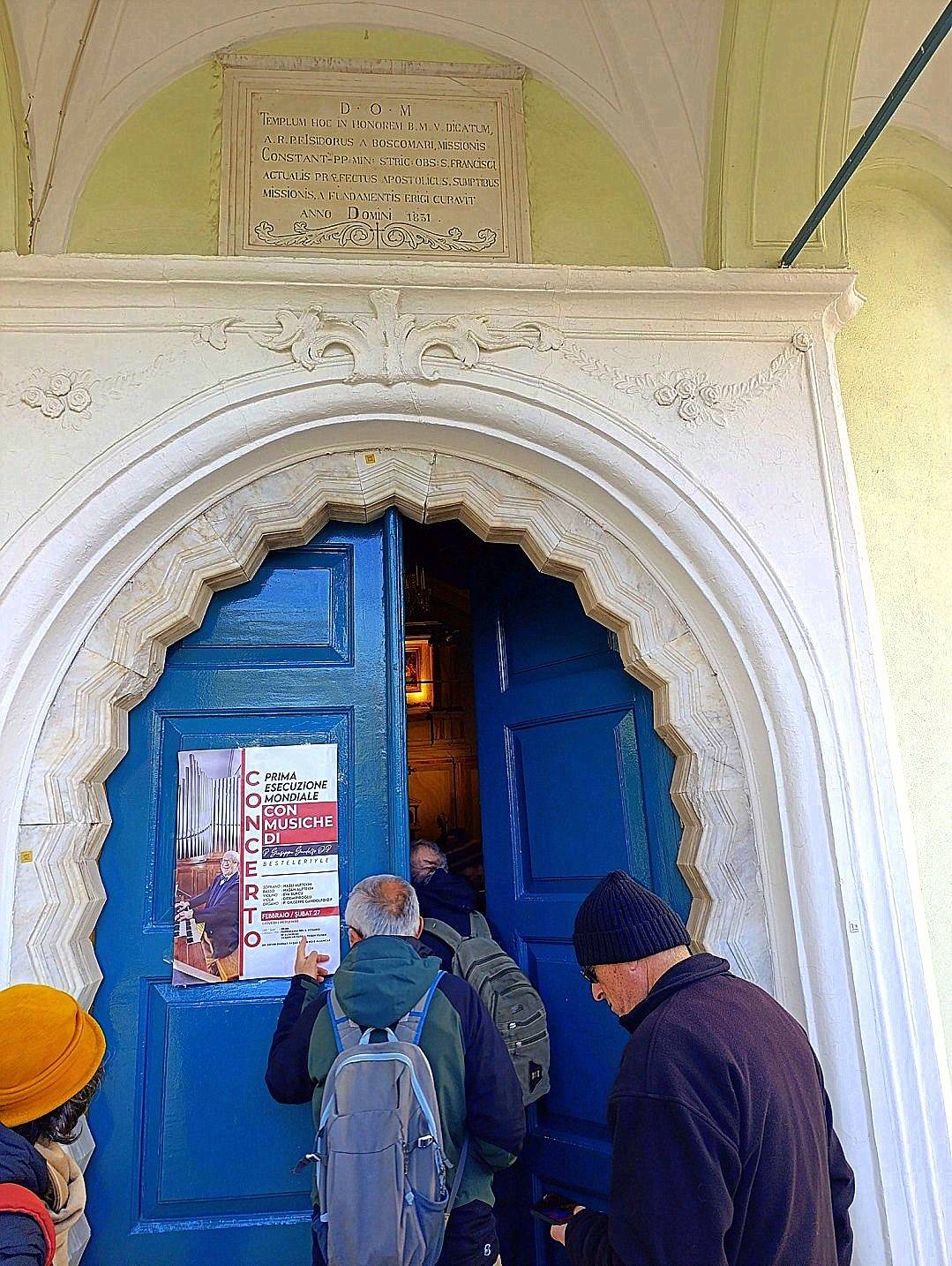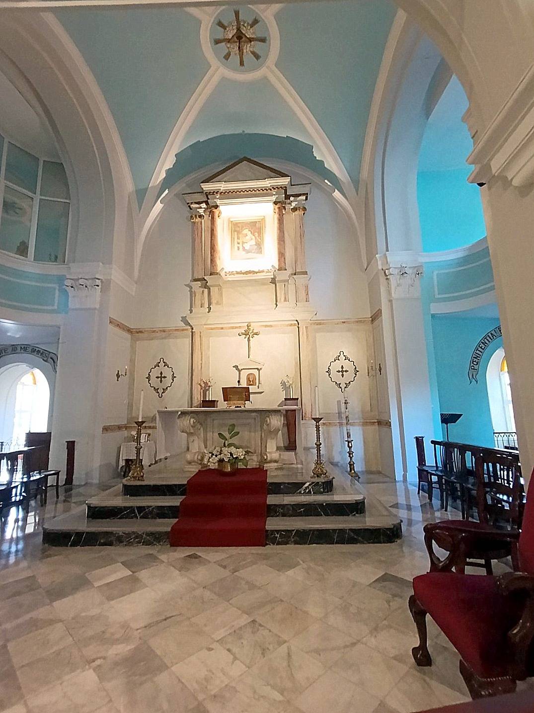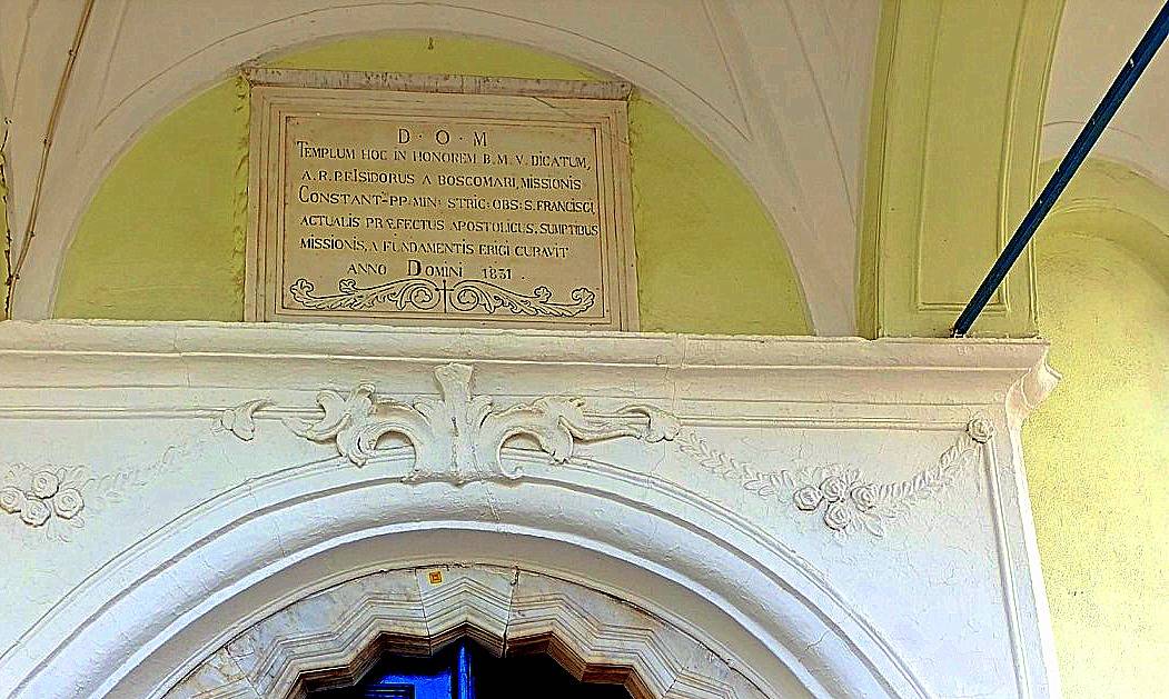 “ Allah'ın 1831 senesinde Muhterem peder İsidora da Boscomari, Aziz Francescus’ un kanununu yerine getiren İstanbul misyon sermaye katkıları ile Kapuçin Pederleri ve halihazırda apostolik yetkili, bu binayı Kutsal Bakire Meryem namına temelinden inşa etmiştir.”