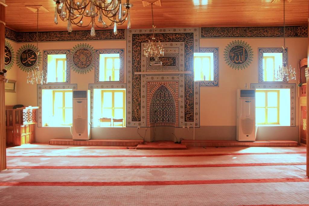 Bir hamamı ve bir kiremit örtülü cami var kapusı üzre tarihi budur,