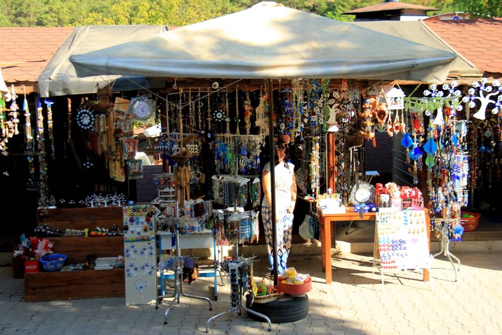 Köyün el sanatı “nazar(göz) boncuÄŸu” atölyeleri özellikle yerli turistlerin ilgisini çekmekte, doÄŸa sporları dernekleri tarafından köyde bulunan kanyona hafta sonları yürüyüÅŸler düzenlenmektedir. Köy piknik alanları ve dinlenme tesisleri açısından zengindir. Nazarköy’de yaklaşık 1940’lardan bu yana Nazar BoncuÄŸu Ocakları’nda cam süs eÅŸyalarının yapıldığı ve bu geleneÄŸin hala sürdüÄŸü bilinmektedir. Köylülerin bu mesleÄŸi Arap Selim lakabıyla tanınan Selim ustadan öÄŸrendikleri ifade edilmektedir. MesleÄŸi köy halkının birbirlerinden öÄŸrenmesiyle 2000li yıllara kadar köyde yaÅŸayan tüm ahalinin emek verdiÄŸi Nazar boncuÄŸu üretimi baÅŸlamıştır. Nüfusu yaklaşık 350 kiÅŸi olan köyde bulunan 12 adet ocak ve atölyelerin sayısı son yıllarda sayıları oldukça artan Çin malı eÅŸyalarının yerli pazara girmesi karşısında altı (6)’ya düÅŸmüÅŸtür. Atölye sahipleri çok zor koÅŸullarda çalışmalarına raÄŸmen bu ata mesleÄŸini ve kültürü yaÅŸatmak için yoÄŸun çaba göstermektedir.