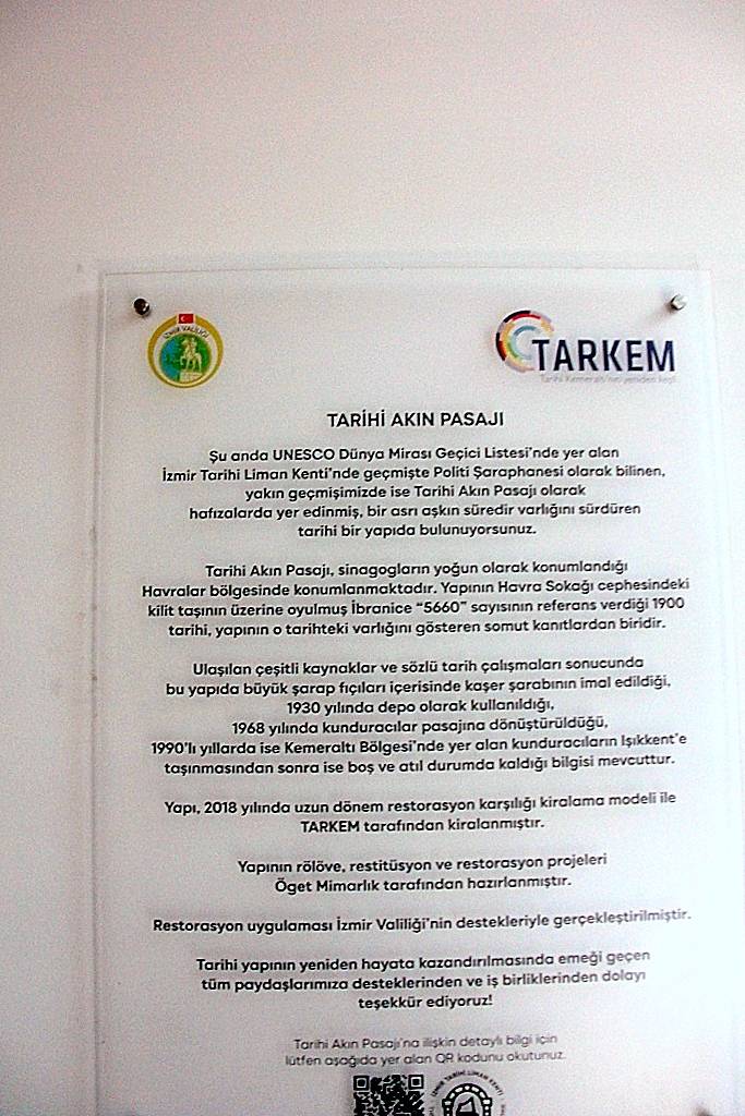 Önce Politi Şaraphanesi, sonra Akın Pasajı olarak anılan fakat aslında başlangıçta İzmir Yahudi cemaatine ait olan Havra Sokağı’ndaki şarap fabrikasının inşa edildiği dönem, 19. Yüzyıl’ın ilk yarısıdır. Bu dönem, Avrupa kökenli Yahudilerin yoksul Osmanlı Yahudilerine mali yardımda bulunduğu ve onlardan alınan bağışlarla din, kültür ve sağlık alanlarında hizmet verecek yapıların inşa edildiği zaman aralığıdır. Başlıca bağışçılar Rothschild, Cremieux ve Montefiore’dir. Özellikle Rothschild ve Montefiore’nin İzmir Yahudi cemaatinin gereksinme duyduğu yapıların inşası için finansör olduğunu biliyoruz. Nitekim Rothschild Hastanesi, Midraş Kadoş Hospital, Talmud Tora Yetim Mektebi ve Lazaretto, 19. Yüzyıl’da sözünü ettiğim bağışlar vasıtasıyla inşa edilmişlerdir.