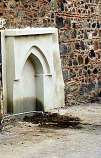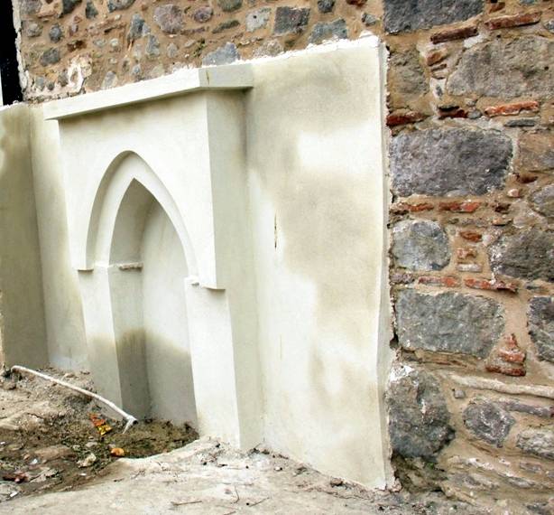 Çeşmenin ayna taşı sivri kemerli büyük bir çökertmenin içine yerleştirilmiştir. Kemer iki yanda kalın dikdörtgen kesitli ayaklara oturmaktadır.