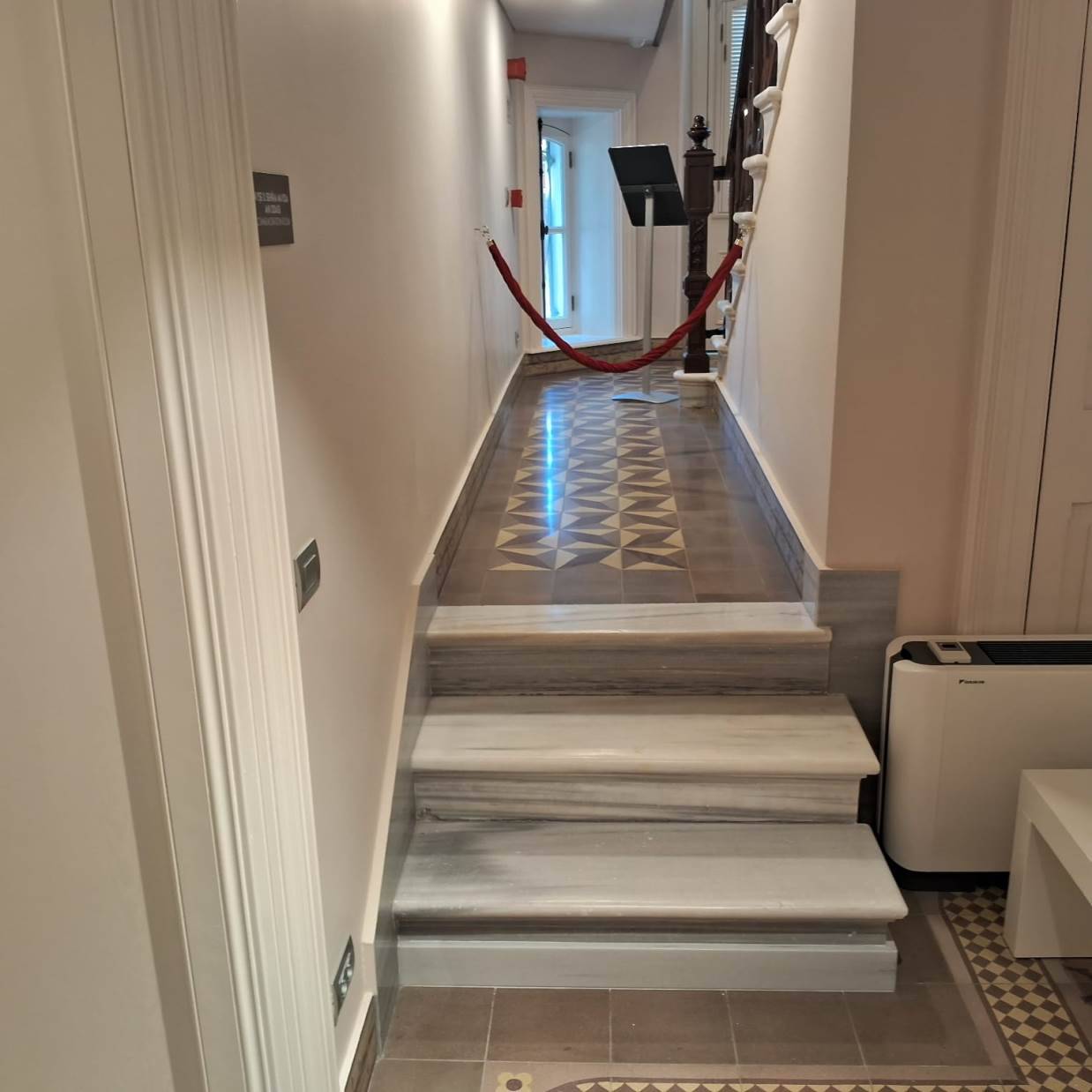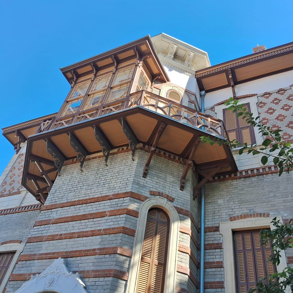 Yapının dış cephesinde kullanılan iki renkli tuğlalarla oluşturulan geometrik desenler, iç mekandaki zarif Art Nouveau detaylarıyla uyum içinde bütünleşerek, bu eserin usta bir mimarın elinden çıktığını açıkça ortaya koymaktadır.
