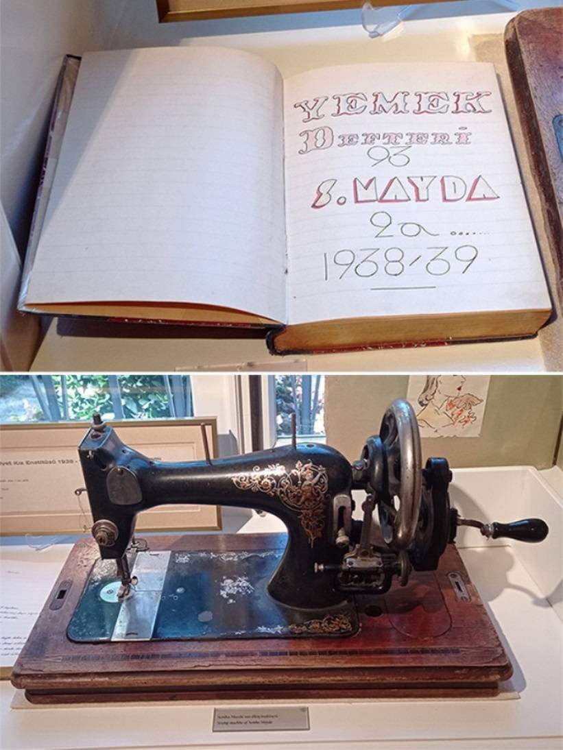 Girişte zemin katta yer alan odada ağırlıkla Ayşe Mayda'nın çocukluğu, eğitim hayatı, bitirdiği okulların diplomaları, diş hekimi olarak çalışmaları, muayenehanesinde ve evinde kullandığı özel eşyaları, şapkaları, verilen plaketler yer alıyor. Bana göre bu odadaki en özel eşyalardan biri de Seniha Hanım'ın 1938-1939 yılında kendi el yazısıyla hazırlanmış "Yemek Defteri." İçinde yemek tarifleri olan defterde Seniha Hanım'ın inci gibi el yazısıyla kaydedilmiş yemek ve içecek tarifleri yer alıyor.