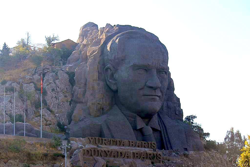 Çaldıran Mahallesi taş ocakları mevkiinde kayaların şekline uygun yaklaşık 40 m. yüksekliğinde 3 boyutlu olarak konuşlandırılmıştır. Atatürk Maskının kaya zemin üzerine işlenmesi işinin teknik danışmanlığını; Dokuz Eylül Üniversitesi ve Ege Üniversitesi Jeoloji, Jeofizik ve İnşaat Bölümü hocaları yapmakta olup, fizibilite ve projelendirme çalışmaları, tahmini olarak 50 ton çelik hasır, 500 m3 püskürtme beton ve 300 ton çelik konstrüksiyon kullanıldı. Tepe civarında çevre düzenleme çalışmaları yapılarak , alan gece gündüz aydınlatılacaktır.Bu rölyef çalışmasıyla ulu önder Mustafa Kemal Atatürk ün adına yakışır bir eser yaratmakla birlikte kentimizin tanıtımına olanak sağlayan bir proje kazandırılmış olacaktır.